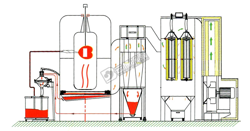 特點(diǎn): 1.適用四種以上顏色粉末噴涂場(chǎng)合; 2.上地面積相對(duì)大旋風(fēng)少;
